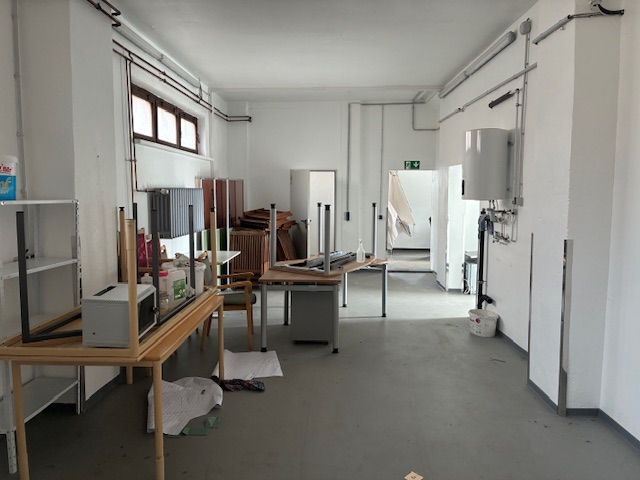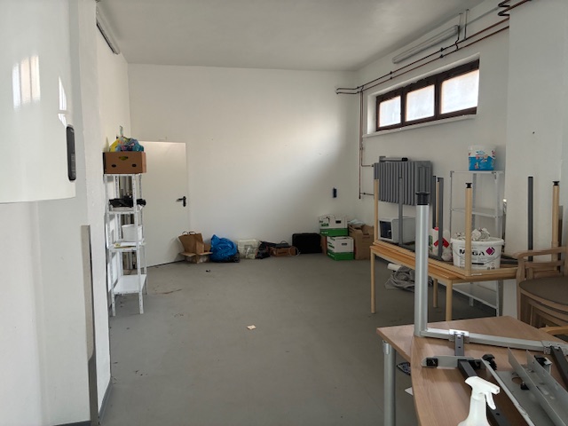 Lager mit Betonfussboden, Büros mit Teppich, Gasheizung, EDV-Verkabelung