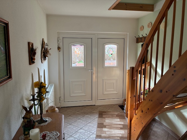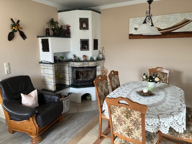 Gastherme (Bj. 2000) mit Flüssiggas, Küche und Diele mit elektr. Fußbodenheizung, Bad im DG mit Fußbodenerwärmung, Kamin, Küche mit EBK, Bad mit Wanne und Dusche, Gä-WC, Fliesen, Teppichboden, Vinyldesignboden, Carport mit Werkstatt, Geflügelstall