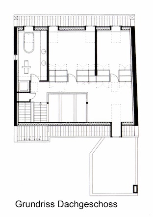 Im 2. Obergeschoss besitzt die Wohnung einen offenen, großzügigen Wohn- und Küchenbereich. Neben der Einbauküche hat man Platz zur Einrichtung eines Essbereiches. Des Weiteren haben wir ein Gästezimmer und ein Gäste-WC mit Dusche. Im Dachgeschoss hat man eine offene Galerie mit Blick ins Wohnzimmer und Zugang zur Dachterrasse (ca. 40 m²), drei Zimmer und ein Vollbad. Der Spitzboden besitzt ca. 25 m².