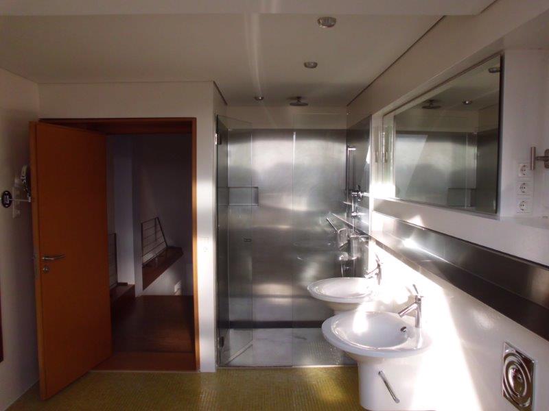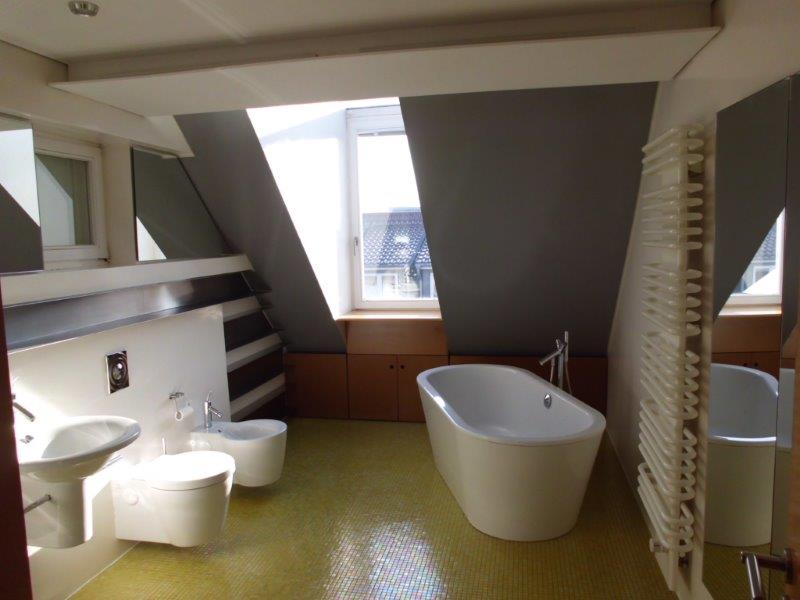 Einbauküche, Duschbad im 2. Obergeschoss, Vollbad mit freistehender Wanne, ebenerdiger Wellnessdusche, Bidet sowie Handtuchheizkörper im Dachgeschoss, Einbauschränke in mehreren Räumen, teilweise elektrische Dachfenster, Dielenfußboden, Stäbchenparkett (Massivparkett), große Dachterrasse
