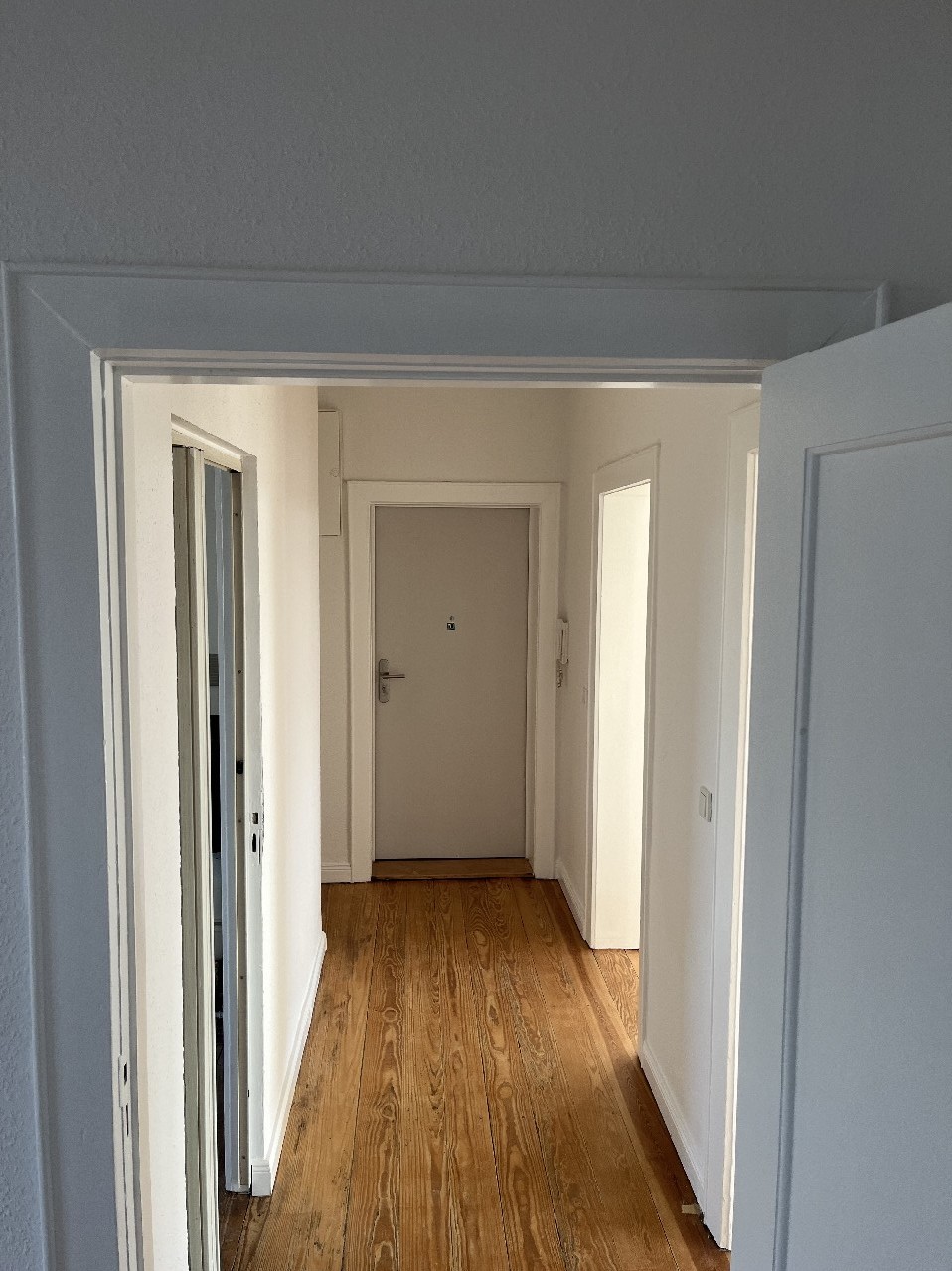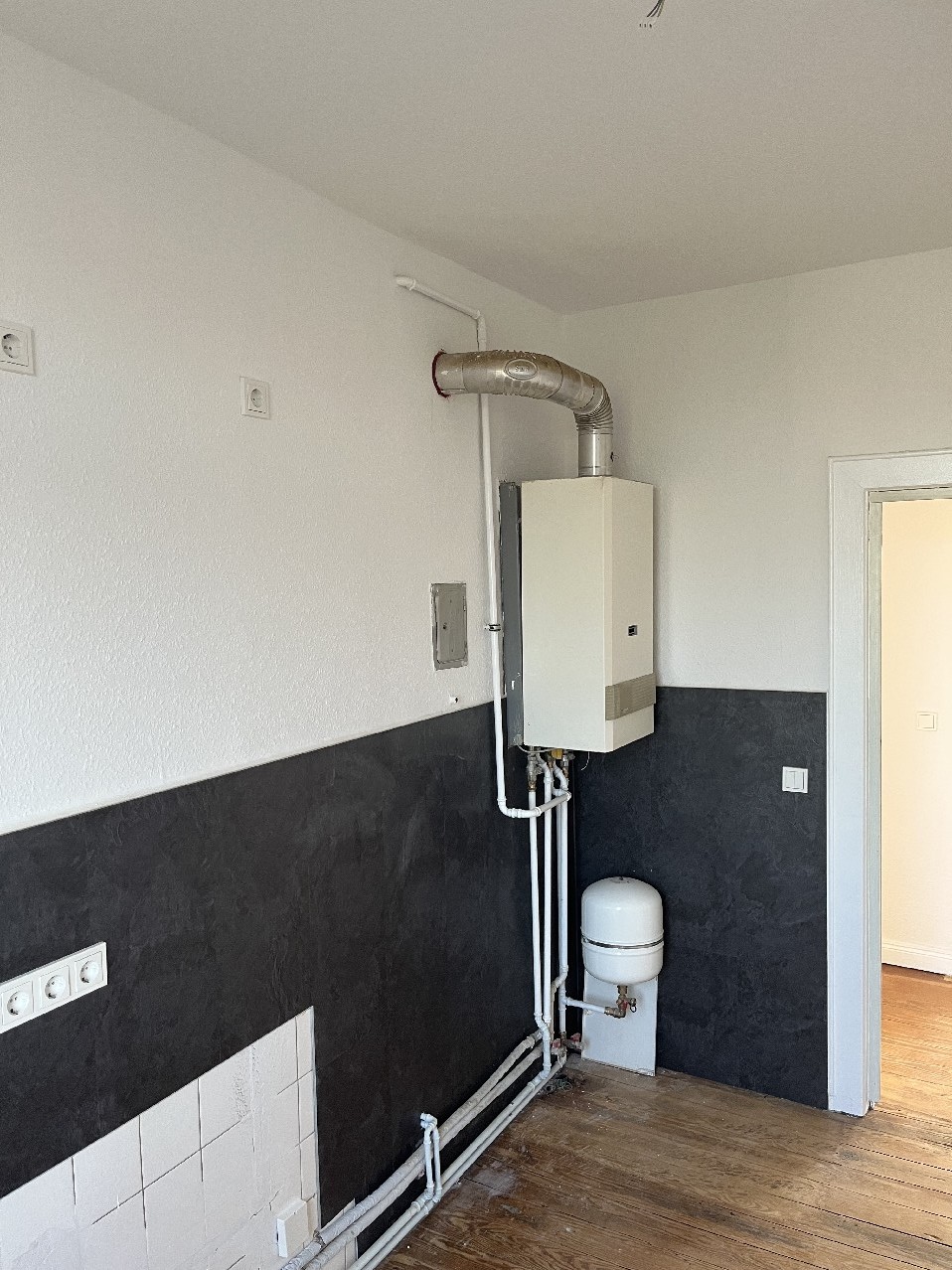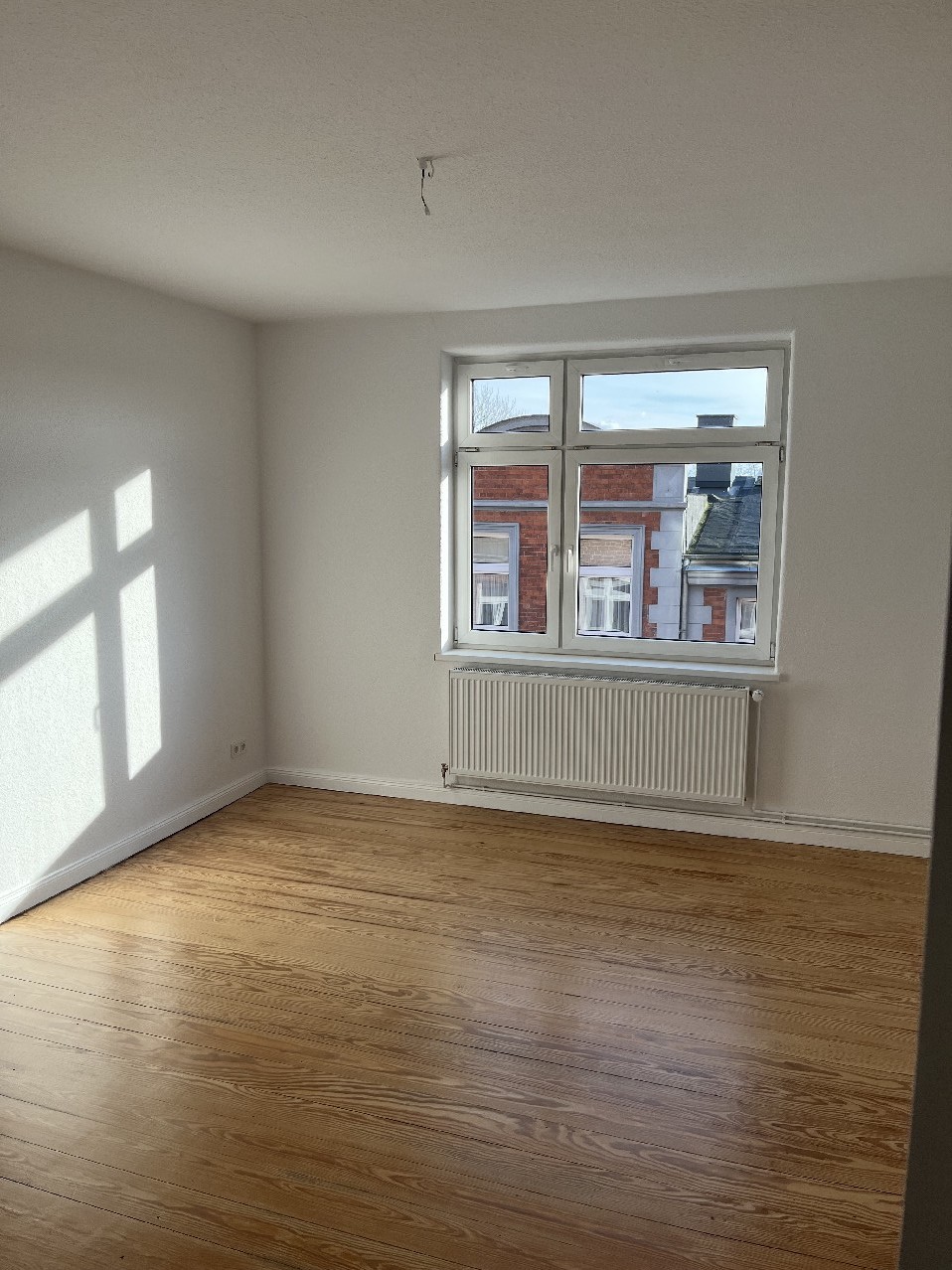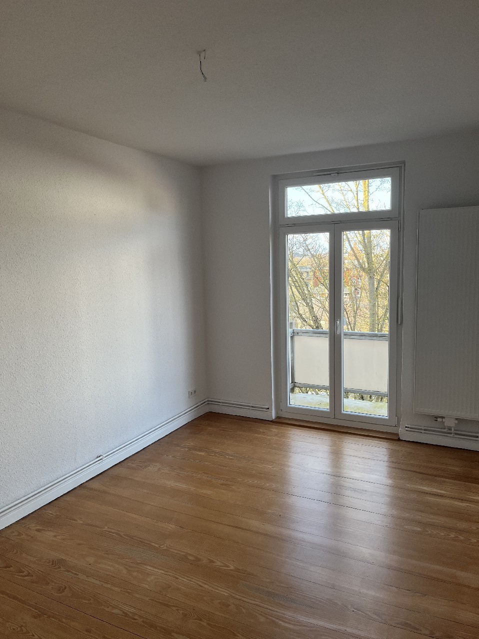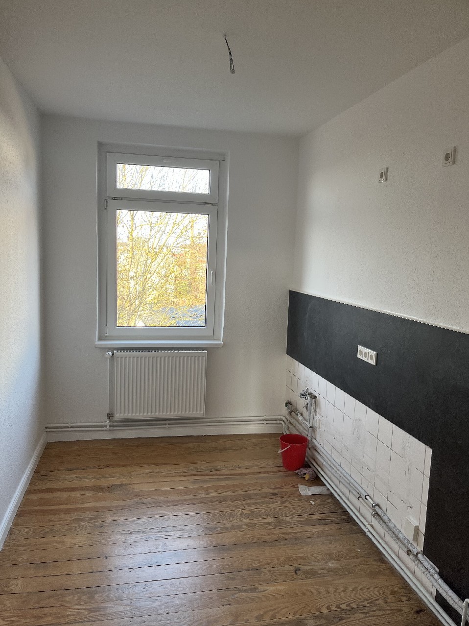 Durch den Vermieter wurden alle Wände weiß gestrichen, vorhandene Steckdosen wurden erneuert bzw. zusätzliche installiert, es wurden alle Heizkörper erneuert und der Dielenboden wurde abgeschliffen und versiegelt.
