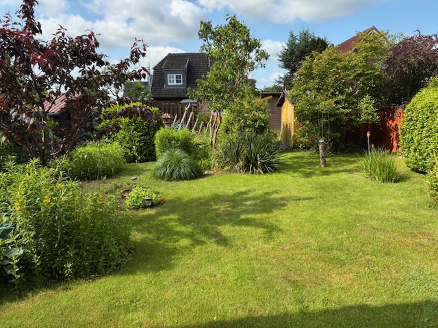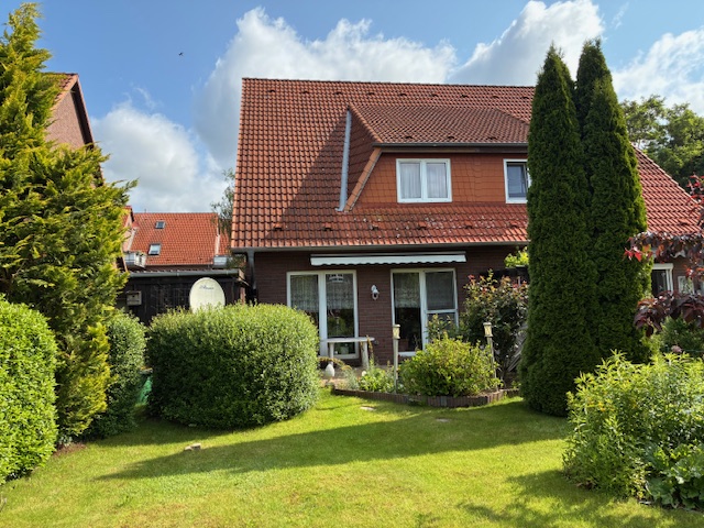 Die nicht unterkellerte Doppelhaushälfte steht auf einem ca. 365 m² großen Grundstück und wurde 1995 in massiver Bauweise in guter Randlage der Wohnanlage Flakenfort errichtet. Die Fassade ist verklinkert und das Dach mit Betonsteinen gedeckt. Im geräumigen Dachboden ist die Gastherme verbaut.