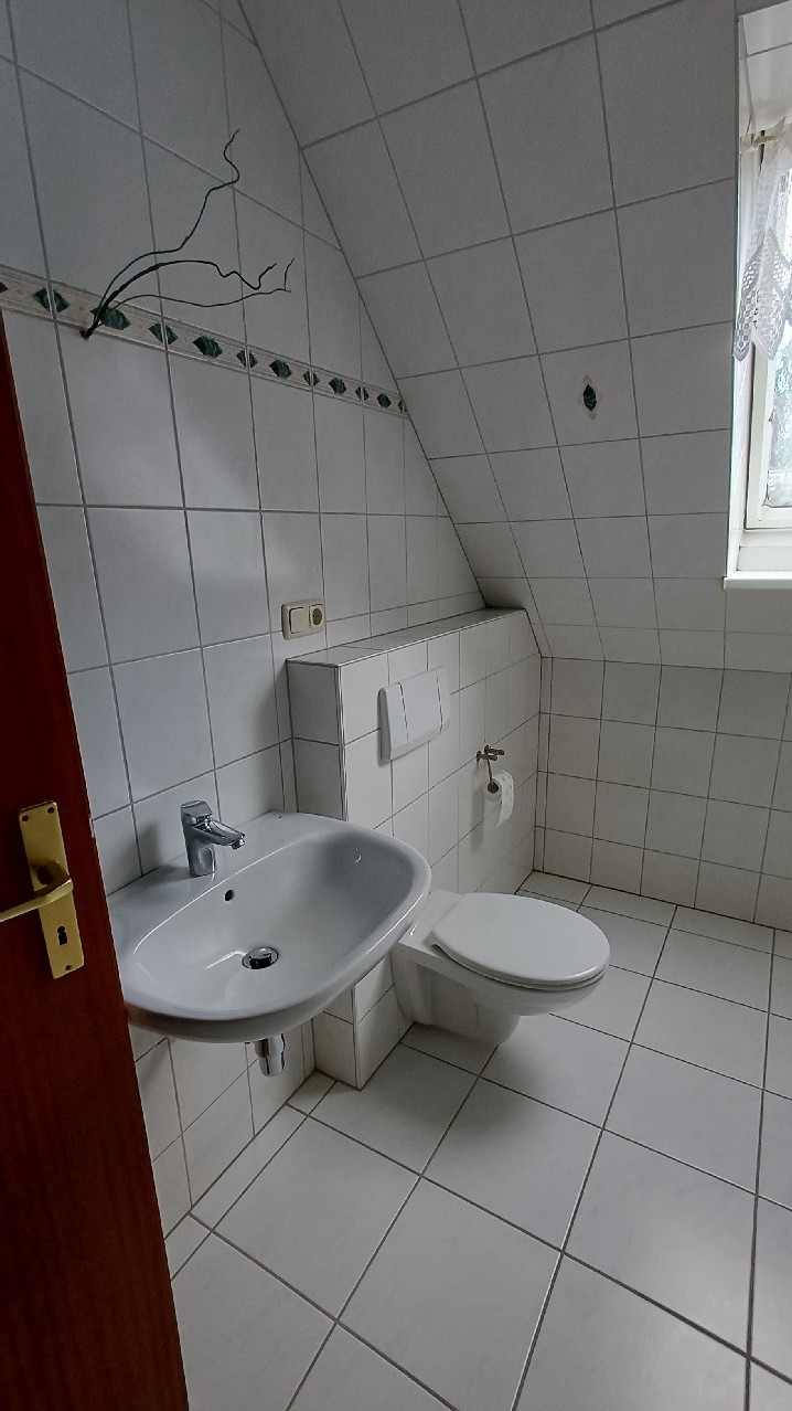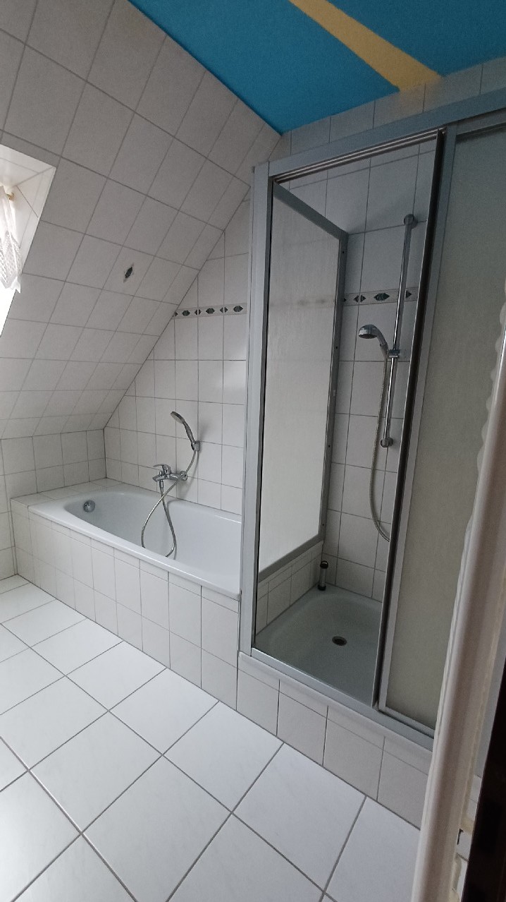 - Badausstattung: Dusche, Badewanne, Fenster im Badezimmer