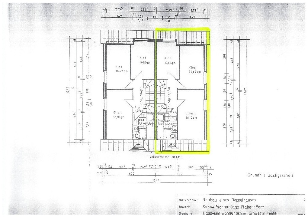 Obergeschoss: Flur, Wannenbad mit Dusche, 3 Schlafzimmer, Zugang mit Einschubtreppe zum Spitzboden, Wfl. ca. 52,74 m²