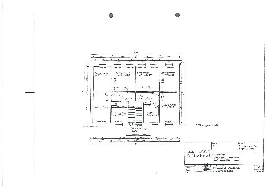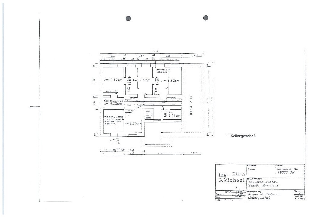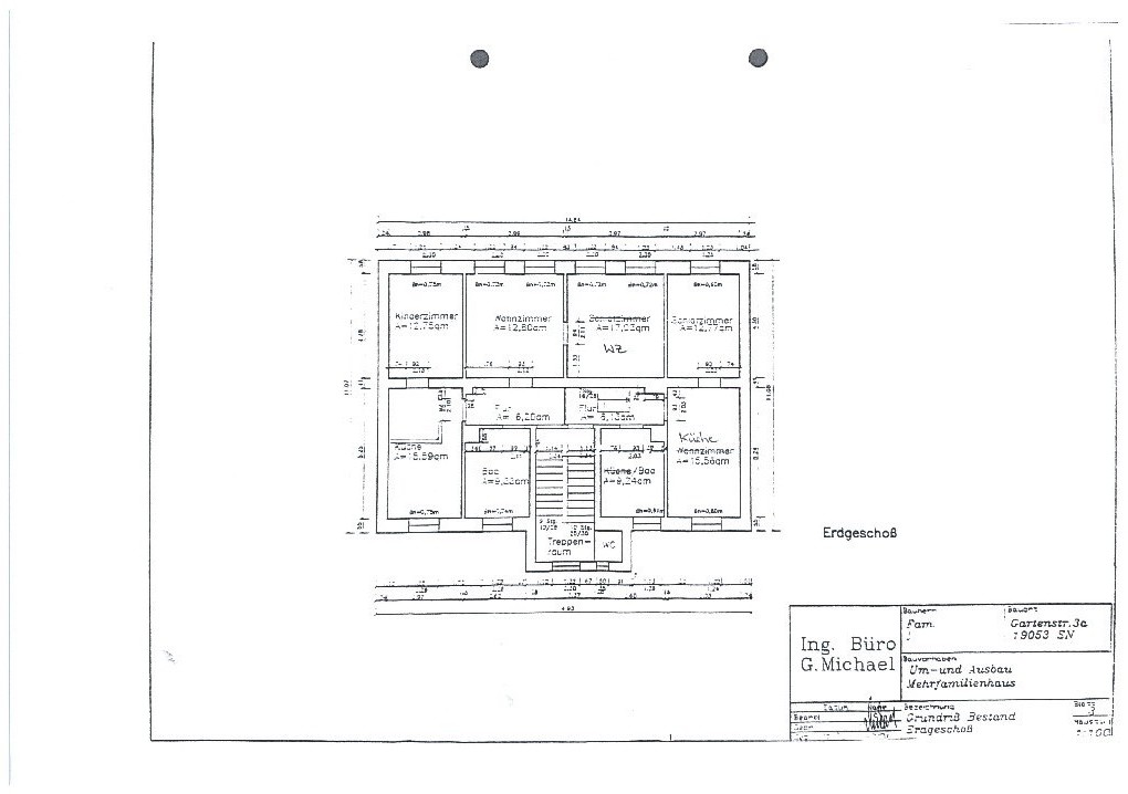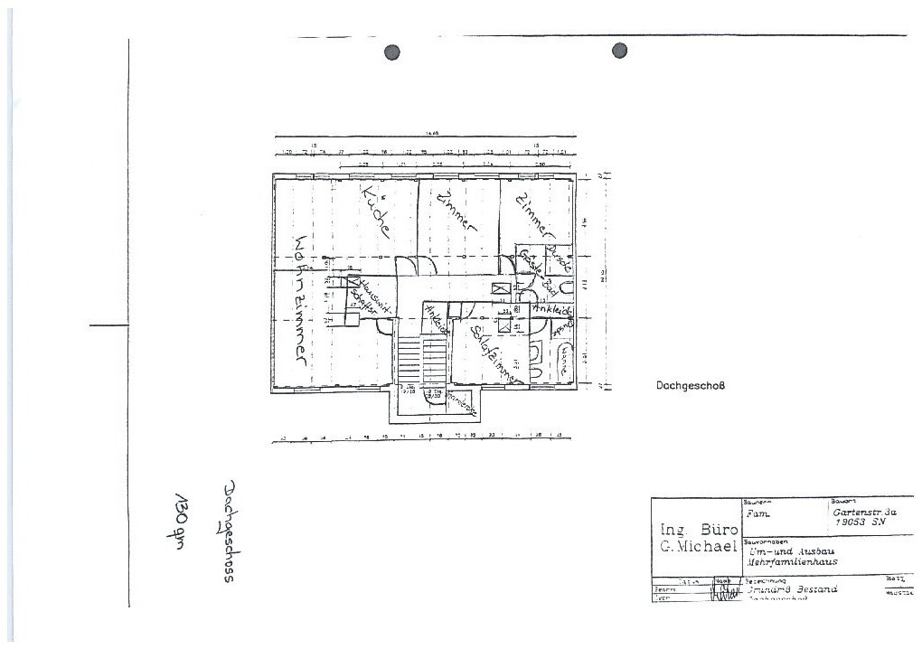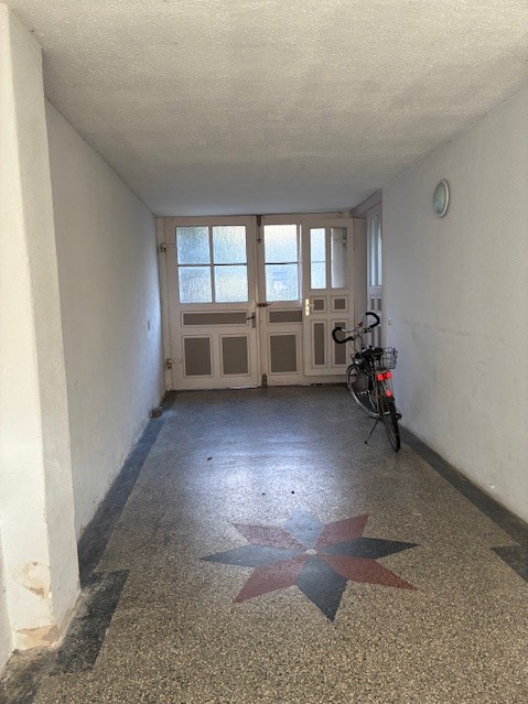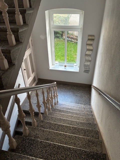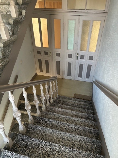 Das Mehrfamilienhaus mit Keller, steht auf einem ca. 397 m² großen Grundstück und und besitzt eine Tordurchfahrt auf den Hofbereich. Die Straßenfassade ist im Erdgeschossbereich verputzt und ab dem 1. Obergeschoss überwiegend mit Ziegel verblendet. Die rückseitige Fassade ist vollständig verputzt. Das Treppenhaus besteht aus Terrazzostufen. Hier ist auch ein kleiner Putzschaden vorhanden, der behoben werden müsste. Der ehemalige Boden wurde im Zuge der Kernsanierung zu einer großen Wohnung ausgebaut. Auf den restlichen Etagen befinden sich jeweils 2 Wohnungen mit jeweils 3 Zimmern.