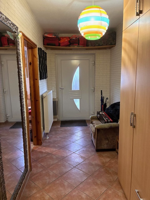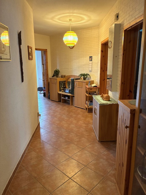 Über den Eingangsbereich gelangt man in einen L-förmigen Flur. Von hier gelangt man in alle Räume des Hauses. Das Dach ist nicht ausgebaut, bietet aber sehr viel Staufläche. Hier befindet sich eine Mini- PV- Anlage für den eigenen Strombedarf oder es wird in das öffentliche Netz eingespeist..
