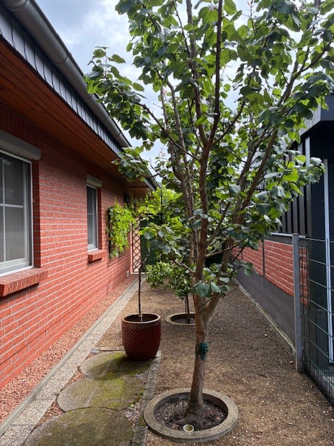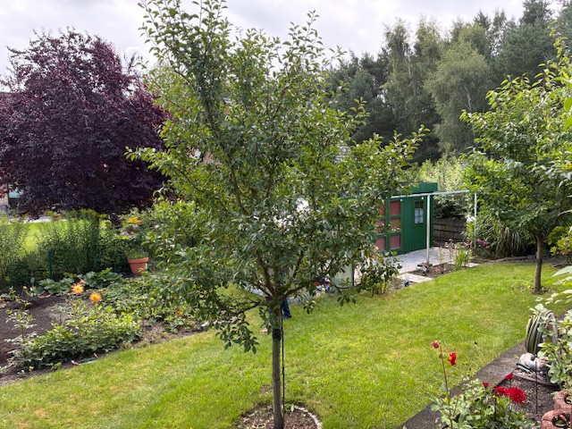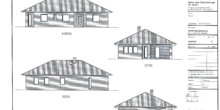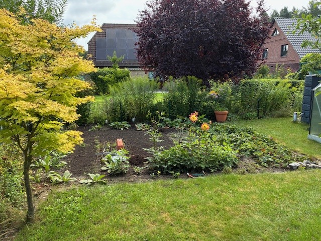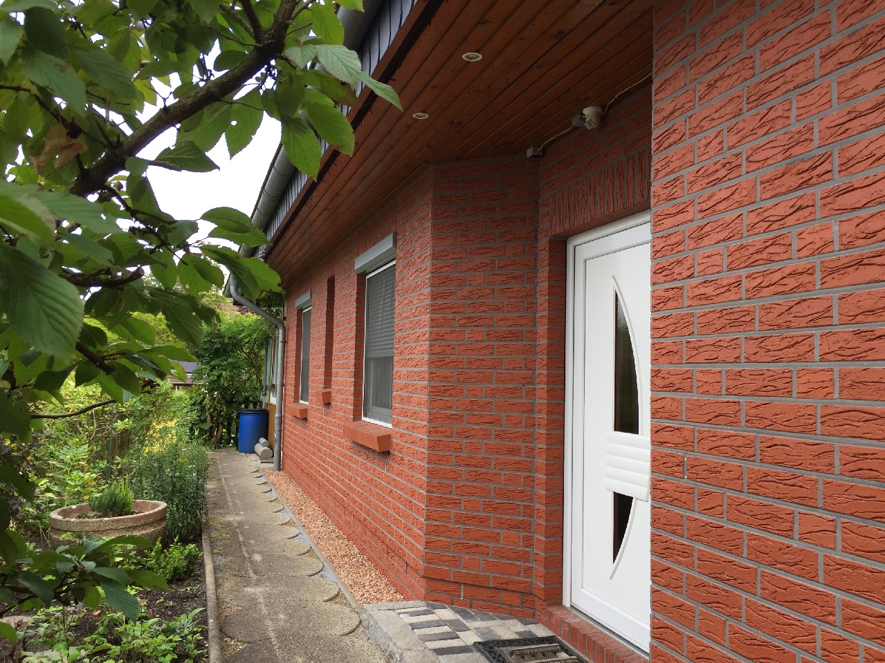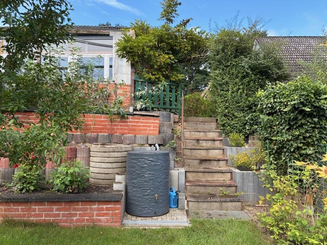Das im Jahr 2005 im Bungalowstil erbaute Haus, steht auf einem ca. 690 m² großen Grundstück. Das Grundstück besitzt eine Einfahrt mit elektr. Toranlage, einen großen Carport mit Platz für zwei PKW und eine dahinter liegenden Werkstatt. Rund um den Bungalow befinden sich angelegte Staudenbeete, Obstgehölze und der Zugang zum tiefer liegenden Garten. Hier befinden sich, neben Gemüsebeeten, ein Gewächshaus, Rasenflächen mit verschiedenen Obstbäumen sowie ein gemütliches Gartenhäuschen.